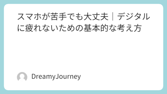この記事で分かること デジタルが苦手と感じる本当の理由 スマホやネットに疲れてしまう原因 無理なくデジタルと付き合うための考え方こんな方におすすめ スマホ操作が苦手だと感じている方 デジタルに振り回されて疲れている方 最低限だけ便利に使えれ...
